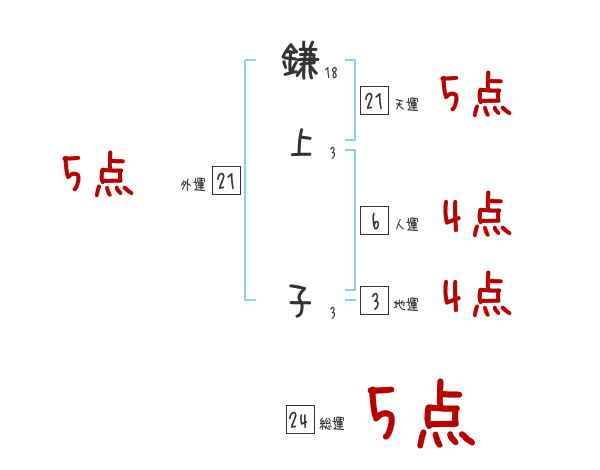 鎌上子さんの画数の鑑定結果