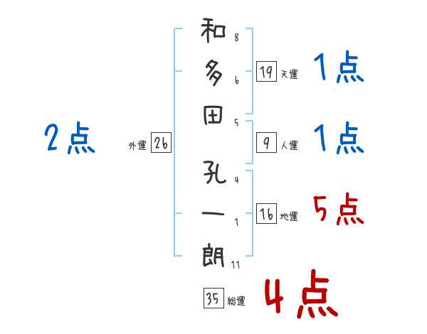 和多田孔一朗さんの画数の鑑定結果