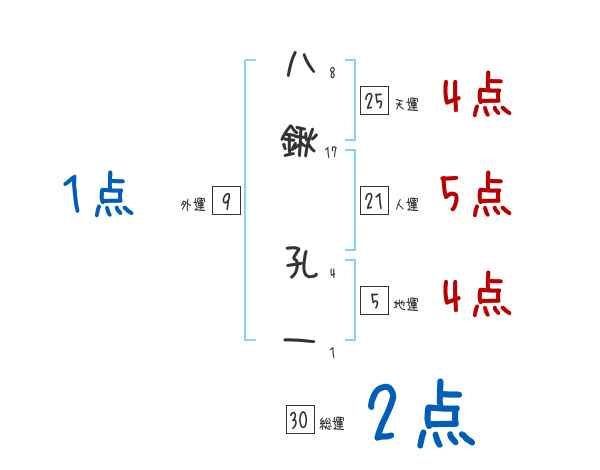 八鍬孔一さんの画数の鑑定結果