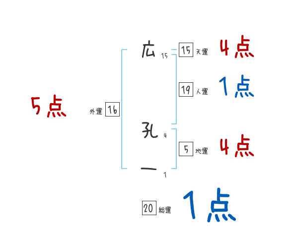 天運![]() | 広孔一さんの天運は15画の4つ星!人徳があり出世する。順調に物事を進め円満な人生。 家系が持つ宿命的な運勢を表します。祖先から受け継いだ苗字ですので自分の力が及びません。家柄を象徴します。 |