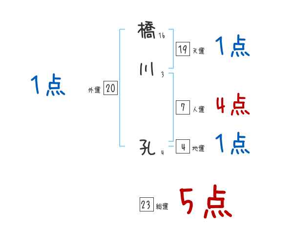 橋川孔さんの画数の鑑定結果