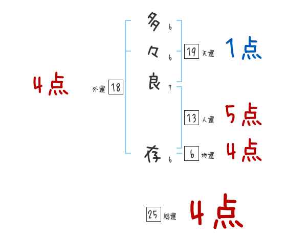 多々良存さんの画数の鑑定結果