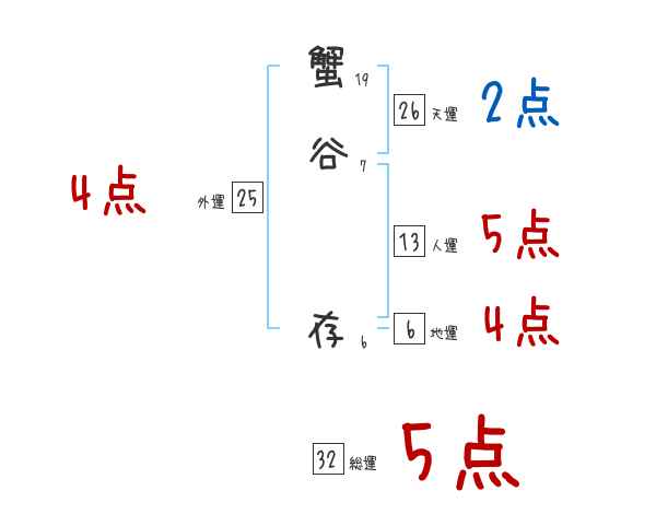 蟹谷存さんの画数の鑑定結果