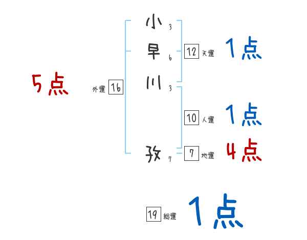 小早川孜さんの画数の鑑定結果