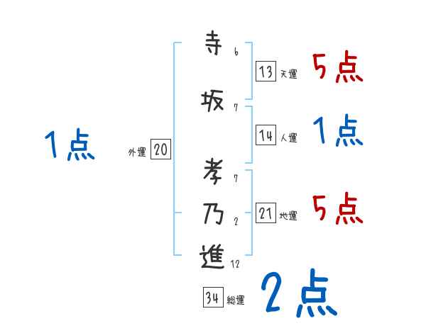 寺坂孝乃進さんの画数の鑑定結果