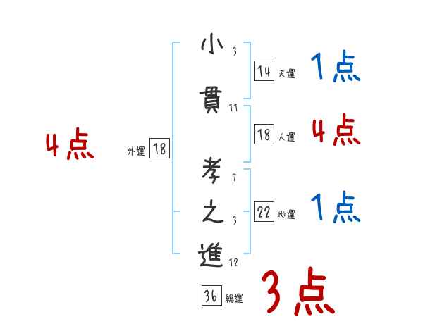 小貫孝之進さんの画数の鑑定結果