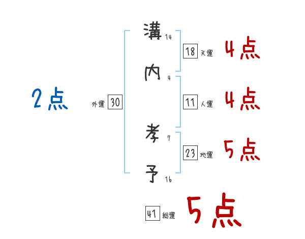 溝内孝予さんの画数の鑑定結果