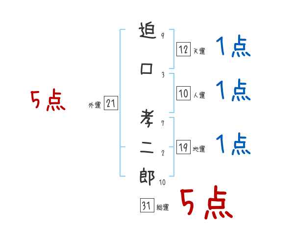迫口孝二郎さんの画数の鑑定結果