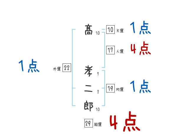 髙孝二郎さんの画数の鑑定結果