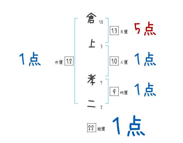 倉上孝二さんの画数の鑑定結果