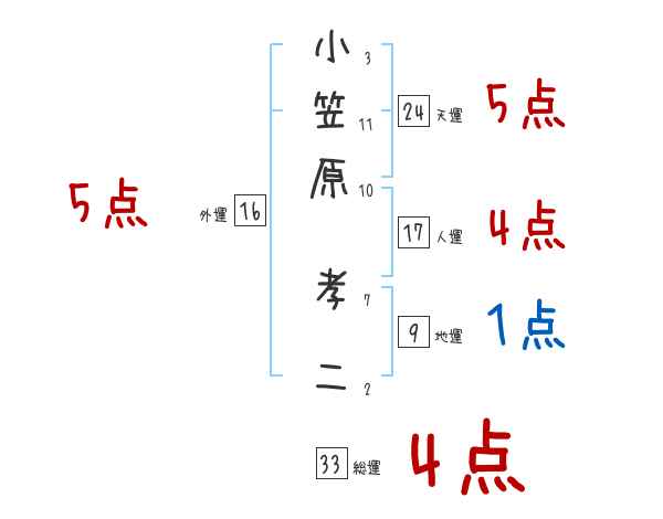 小笠原孝二さんの画数の鑑定結果