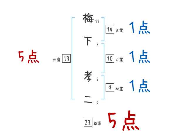 梅下孝二さんの画数の鑑定結果