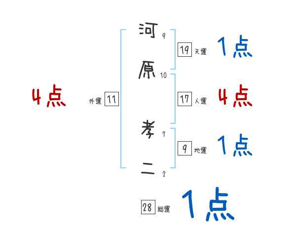 河原孝二さんの画数の鑑定結果