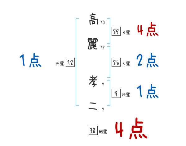 高麗孝二さんの画数の鑑定結果