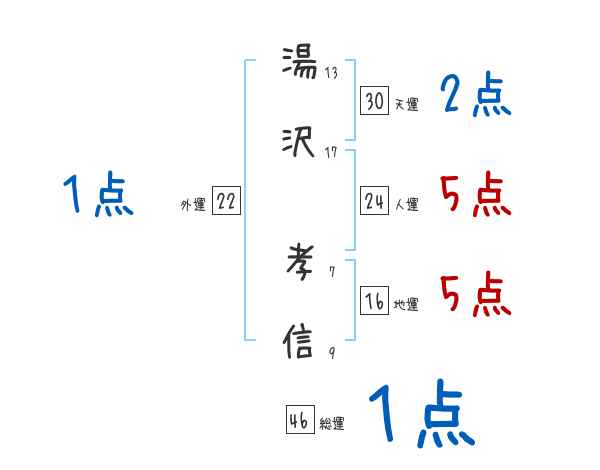 湯沢孝信さんの画数の鑑定結果