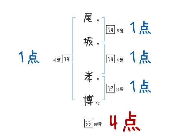 尾坂孝博さんの画数の鑑定結果