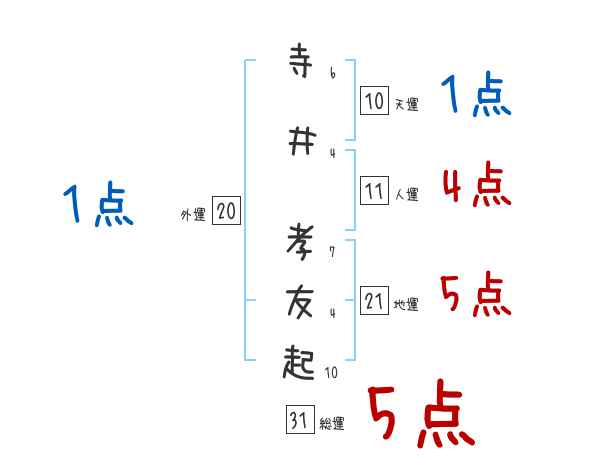 寺井孝友起さんの画数の鑑定結果