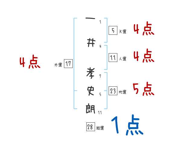 一井孝史朗さんの画数の鑑定結果