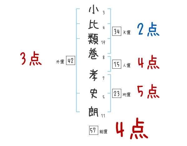 外運![]() | 小比類巻孝史朗さんの外運は42画の3つ星!病気に注意。多芸であるが消極的でおとなしい。 生活面を象徴する運勢です。外部から受ける影響力を表し、結婚運、家庭運や職場、環境への順応性を表します。 |