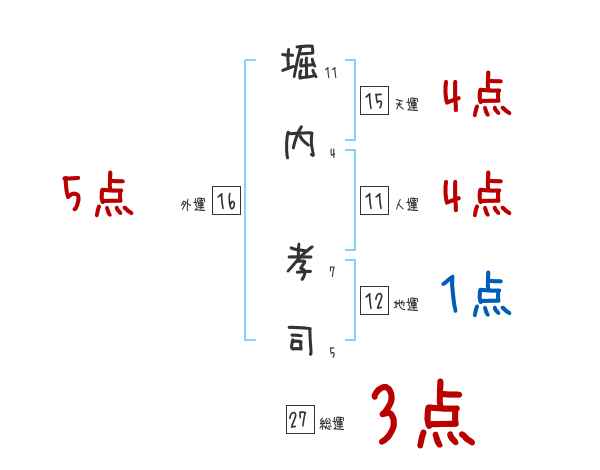 堀内孝司さんの画数の鑑定結果