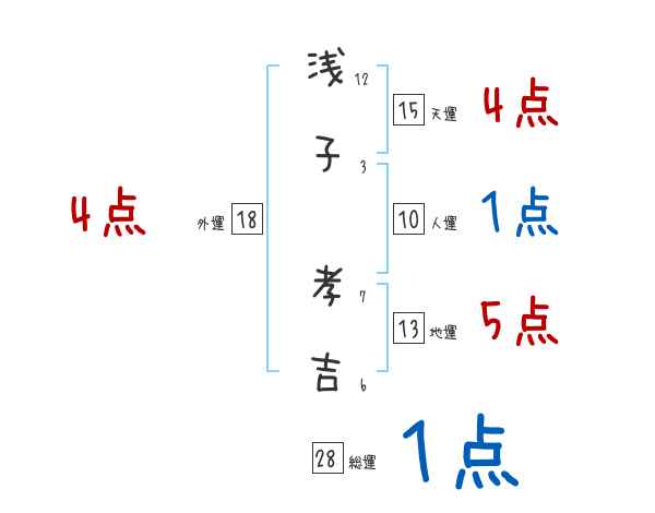 外運![]() | 浅子孝吉さんの外運は18画の4つ星!情熱的で剛気。忍耐力があり信頼される。 生活面を象徴する運勢です。外部から受ける影響力を表し、結婚運、家庭運や職場、環境への順応性を表します。 |