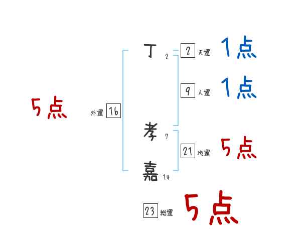 丁孝嘉さんの画数の鑑定結果