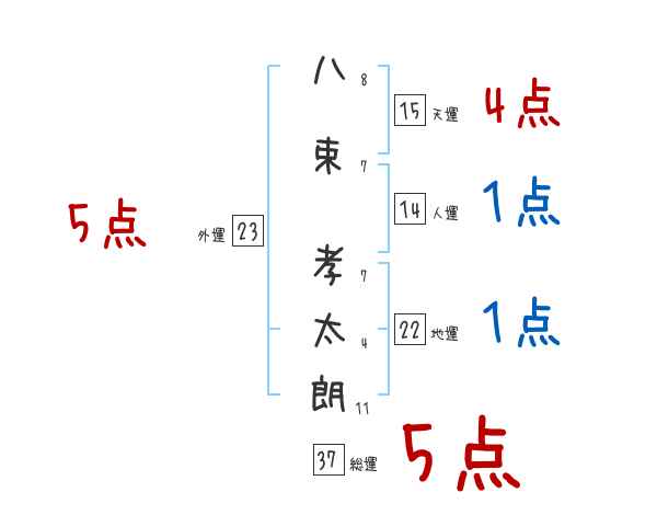 天運![]() | 八束孝太朗さんの天運は15画の4つ星!人徳があり出世する。順調に物事を進め円満な人生。 家系が持つ宿命的な運勢を表します。祖先から受け継いだ苗字ですので自分の力が及びません。家柄を象徴します。 |