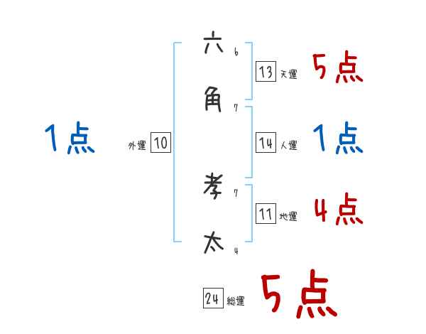 天運![]() | 六角孝太さんの天運は13画の5つ星!才能に恵まれ人気がある。名声を手に入れる。円満な人生。 家系が持つ宿命的な運勢を表します。祖先から受け継いだ苗字ですので自分の力が及びません。家柄を象徴します。 |
