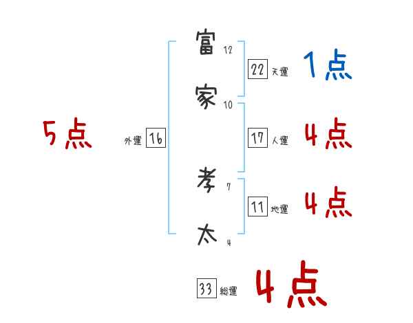 富家孝太さんの画数の鑑定結果