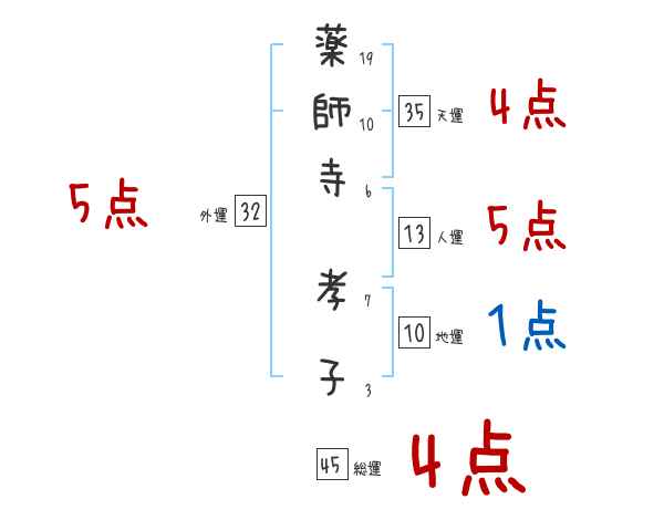 薬師寺孝子さんの画数の鑑定結果