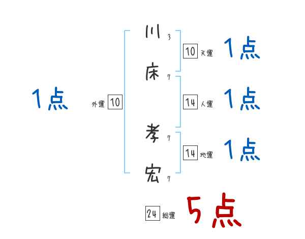 川床孝宏さんの画数の鑑定結果