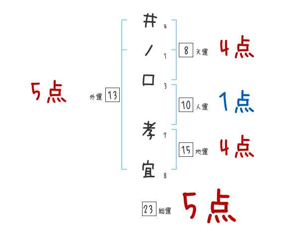 総運![]() | 井ノ口孝宜さんの総運は23画の5つ星!想像力に優れ活力がある。一代で成功し名誉を手に入れる。 あなたの人生を表す1番重要な運勢です。生涯を通じて影響する総合運となり、主に50歳以降の晩年期に影響を及ぼします。 |
