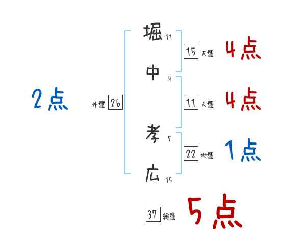 堀中孝広さんの画数の鑑定結果