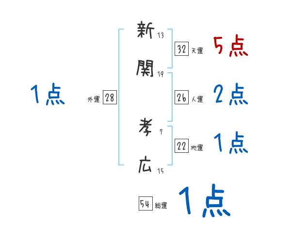 新関孝広さんの画数の鑑定結果