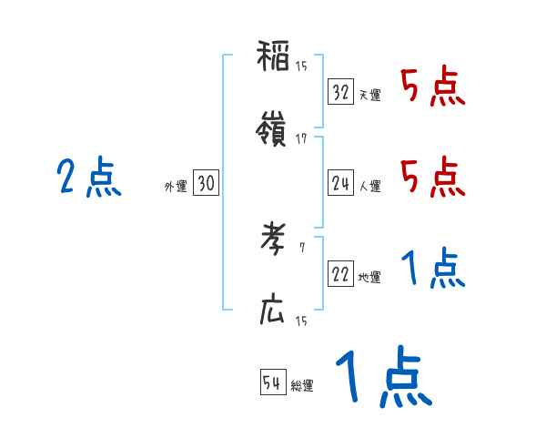 稲嶺孝広さんの画数の鑑定結果