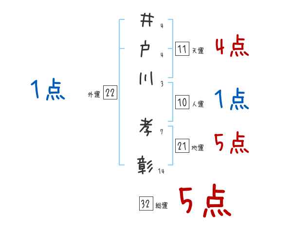 井戸川孝彰さんの画数の鑑定結果