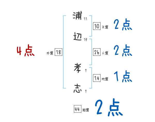 浦辺孝志さんの画数の鑑定結果