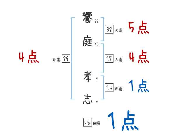 天運![]() | 饗庭孝志さんの天運は32画の5つ星!柔軟性があり成功する。チャンスが多く金運が良い。 家系が持つ宿命的な運勢を表します。祖先から受け継いだ苗字ですので自分の力が及びません。家柄を象徴します。 |