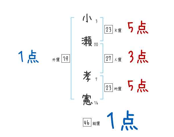 小瀬孝憲さんの画数の鑑定結果