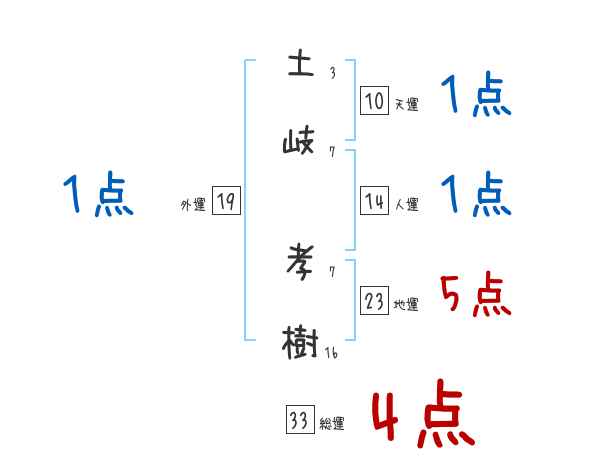 土岐孝樹さんの画数の鑑定結果