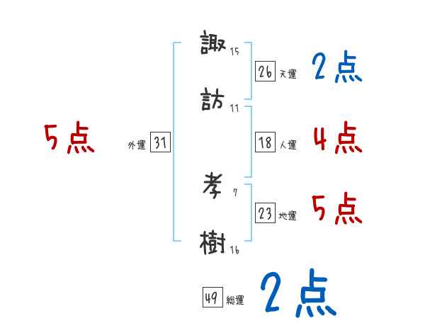 諏訪孝樹さんの画数の鑑定結果