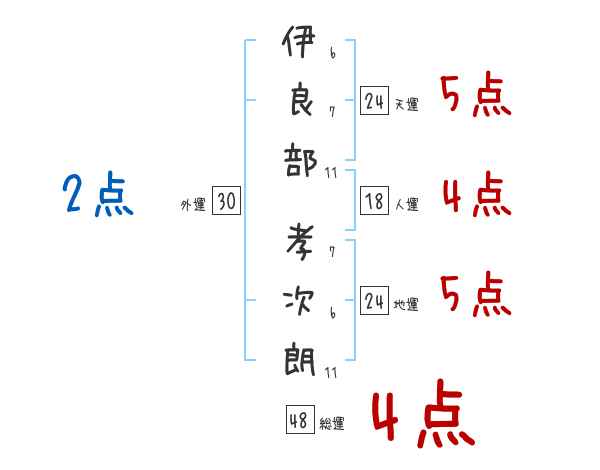 伊良部孝次朗さんの画数の鑑定結果