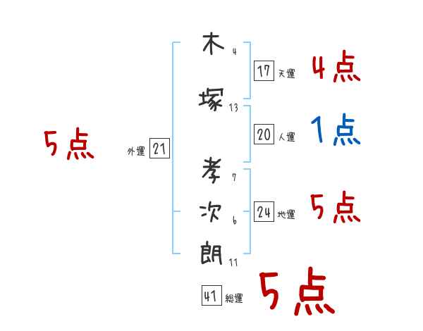 木塚孝次朗さんの画数の鑑定結果
