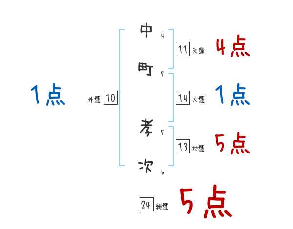 中町孝次さんの画数の鑑定結果