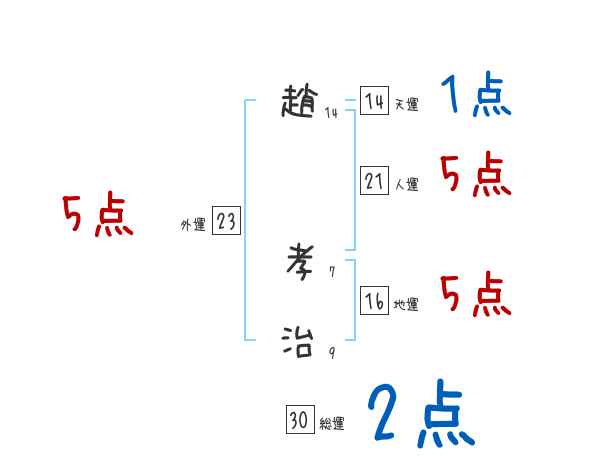 趙孝治さんの画数の鑑定結果