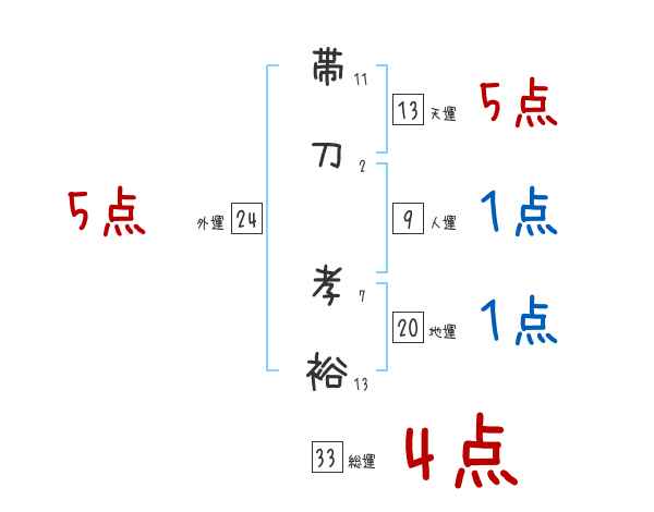 帯刀孝裕さんの画数の鑑定結果