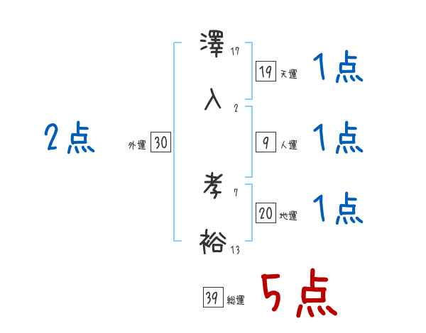 澤入孝裕さんの画数の鑑定結果
