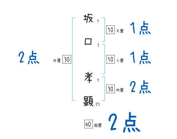 坂口孝顕さんの画数の鑑定結果