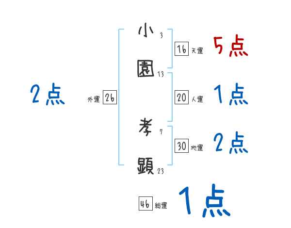 小園孝顕さんの画数の鑑定結果