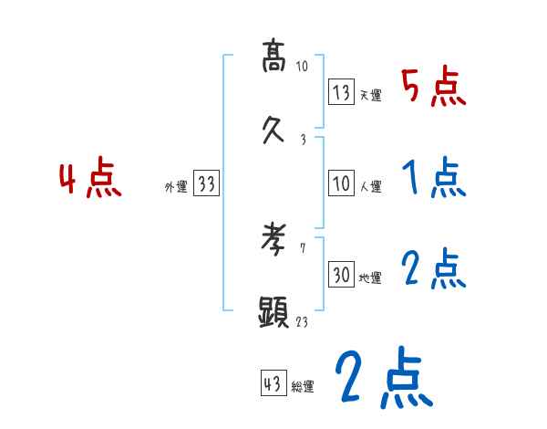 髙久孝顕さんの画数の鑑定結果
